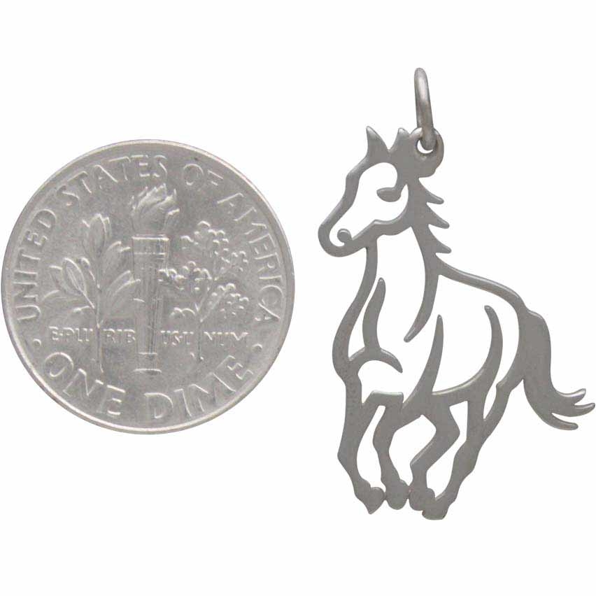 This Galloping Horse Charm reminds us of the exaltation of spirit expressed by the vision of a horse running free in the open pasture as the wind blows through its mane. Due to its natural companionship with humans, the horse easily wins a special place in our hearts, earning high marks for honor and grace. Horses have come to stand for power, beauty, strength, freedom, and nobility. Discover more in our Western Collection and our Animal Collection!