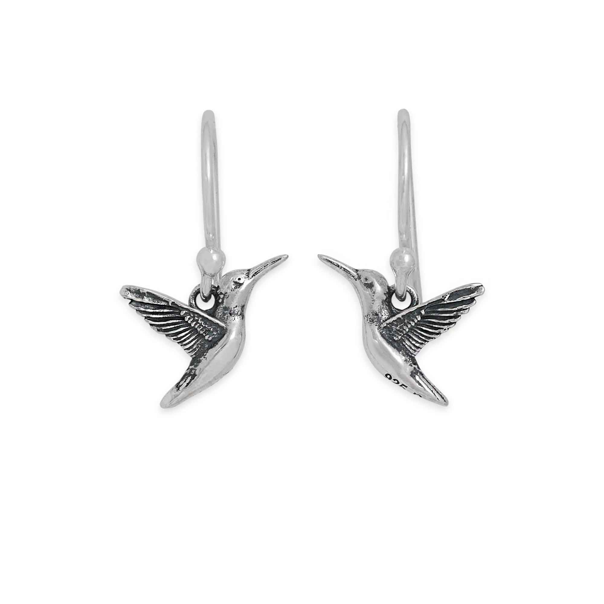 Offer these sterling silver Hummingbird Dangle Earrings in your jewelry shop. Despite its size, hummingbirds travel far and wide, move in any direction, and hover in stillness. Unbound by time, space, and direction, hummingbirds help us remember life is never linear, to enjoy the freedom of movement, and the sometimes random paths that shape our lives.