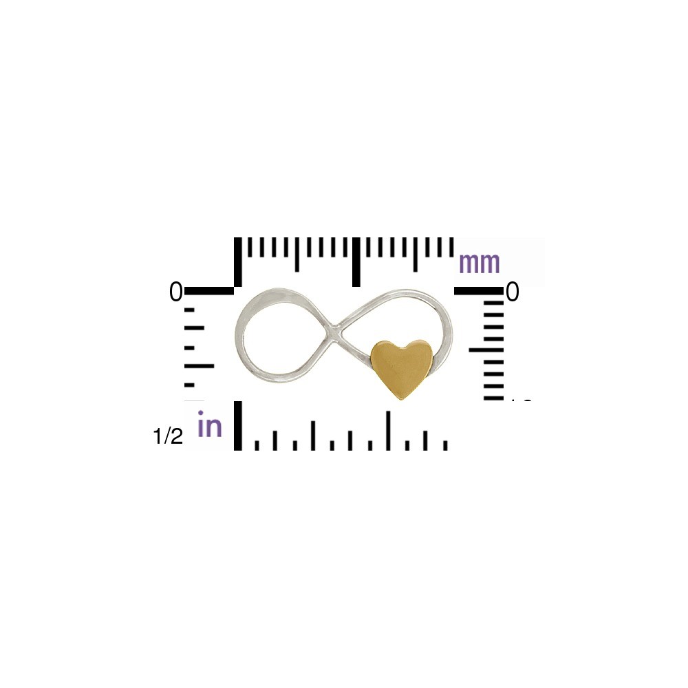 Sterling Silver Infinity Link with Tiny Bronze Heart. The infinity shape is classic, curved, and embodies strong symbolism. Infinities represent endless time, and space, and having no boundaries. Love and friendship last forever. The tiny bronze heart detail adds an extra special, loving touch to this delicate link. Attach chain or cord to both ends of the link for unique necklace and bracelet designs. Make unique best friends necklaces, or bracelets for your bridesmaids! Shop more of our heart collection!
