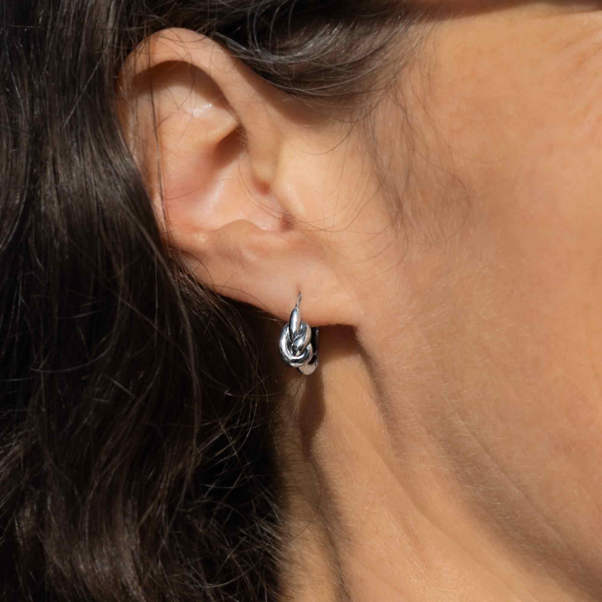 Effortlessly chic, these sterling silver knot huggie hoop earrings add a touch of timeless sophistication to any look. Each hoop features a sculptural knot detail — a classic symbol of unity and strength — seamlessly integrated into the design for a modern, minimalist finish. Crafted in bright, polished sterling silver, these lightweight hoops hug the ear perfectly, making them ideal for everyday wear or as an elegant layering piece with other studs and hoops. Find more Finished Earrings to easily refresh your listings.