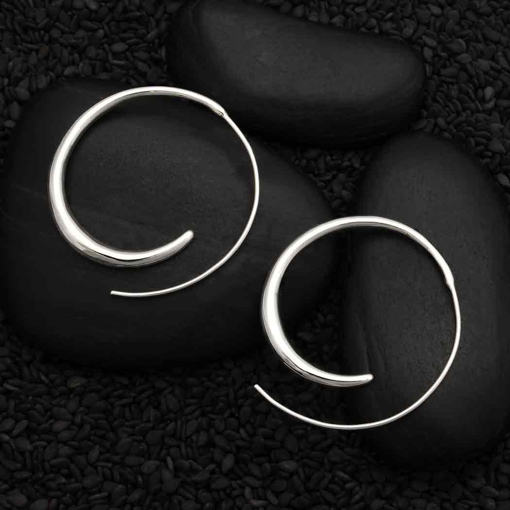 This sterling silver large tapered hoop earrings satisfy with its feminine lines and elemental vibe. The hoop's tapered shape moves from slender to pillowy, adding to its organic, almost liquid quality. Your customers who appreciate simplicity in design will be drawn to these hoops.