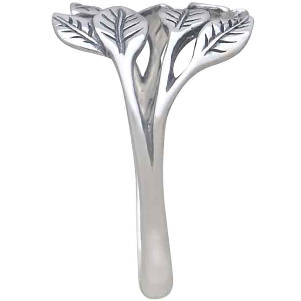 When worn this sterling silver leaf cluster adjustable ring creates a lush look any nature lover or gardener would appreciate. The graphic leaves emerge from the sides of the finger as if they just popped up there to brighten up your day!