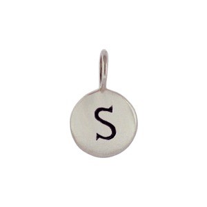 This small sterling silver letter disc "S" charm features a 5 mm soldered ring to make attaching it to a Finished Chain easy peasy. This initial charm is perfect for making personalized jewelry. Create a cluster necklace with birthstone charms, hobby charms, or word charms! The possibilities are endless with this letter charm.