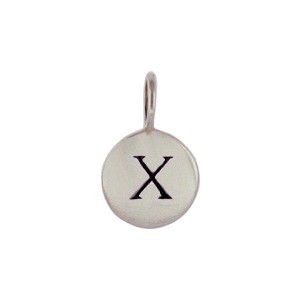 This small sterling silver letter disc "X" charm features a 5 mm soldered ring to make attaching it to a Finished Chain easy peasy. This initial charm is perfect for making personalized jewelry. Create a cluster necklace with birthstone charms, hobby charms, or word charms! The possibilities are endless with this letter charm.