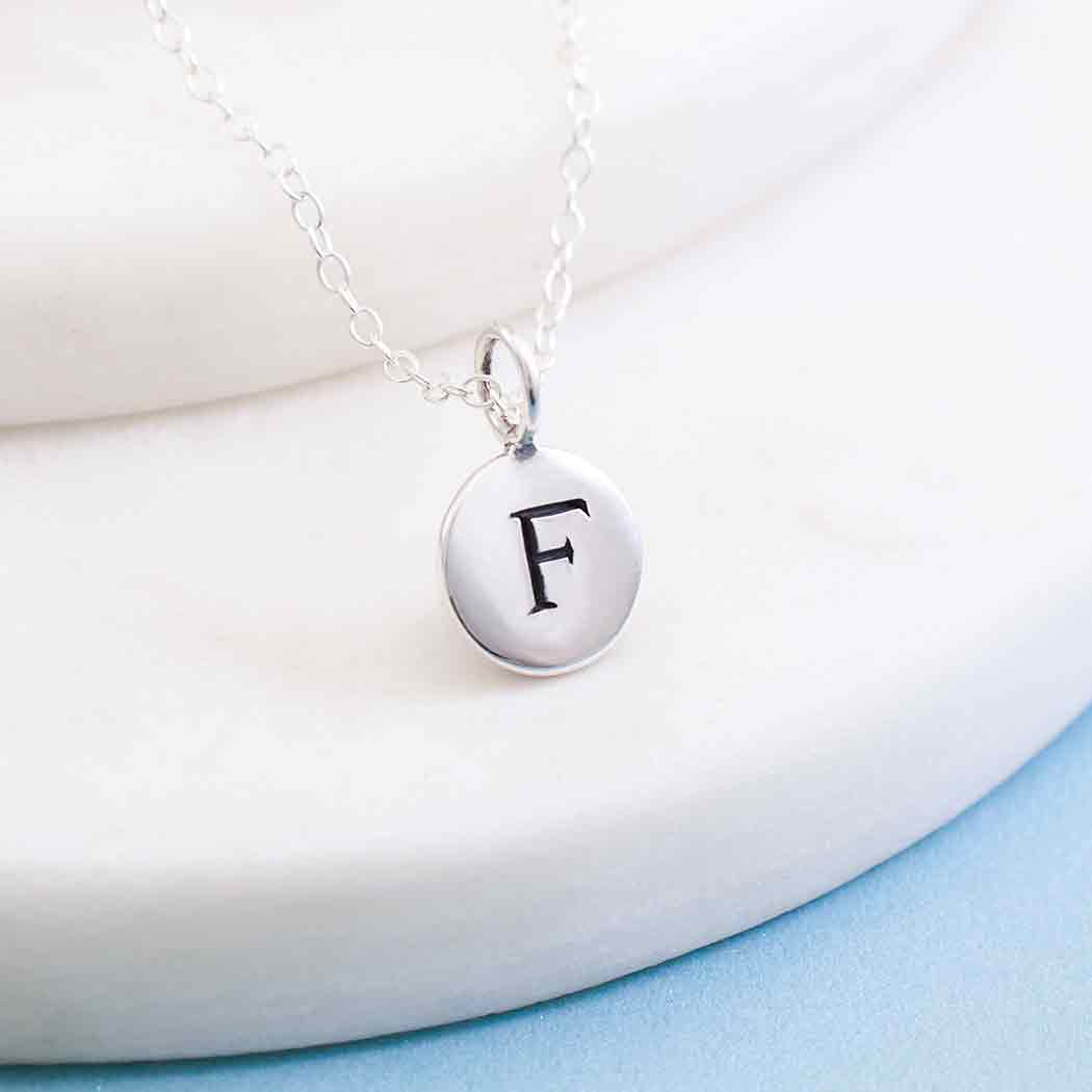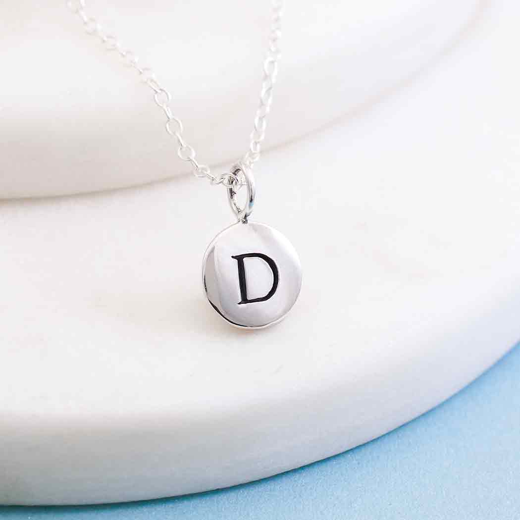 These small sterling silver letter disc necklaces are perfect for making personalized jewelry. Create a cluster necklace with birthstone charms, hobby charms, or word charms! The possibilities are endless with this letter charm necklace.