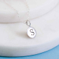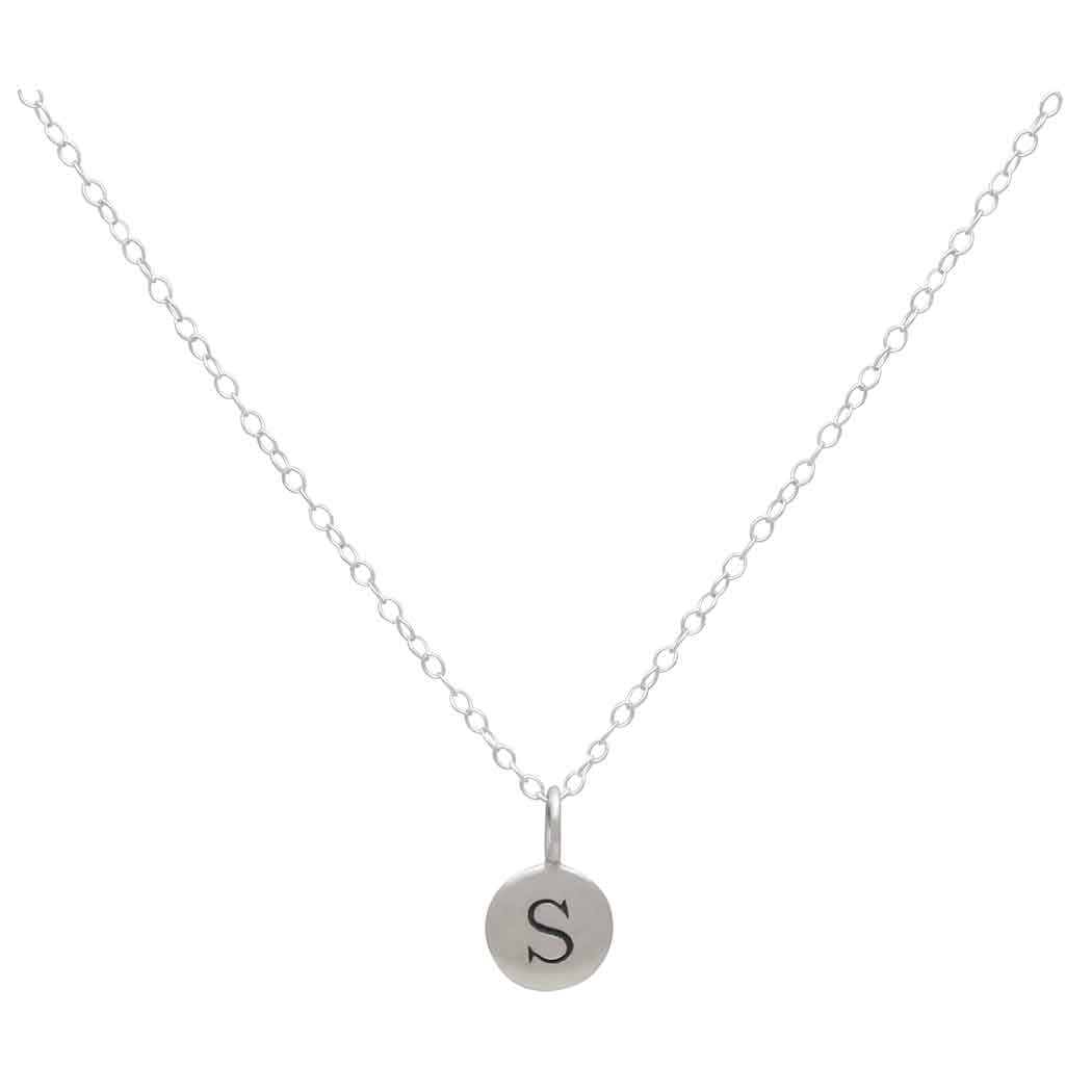This small sterling silver letter disc "S" necklace is perfect for making personalized jewelry. Create a cluster necklace with birthstone charms, hobby charms, or word charms! The possibilities are endless with this letter charm necklace.