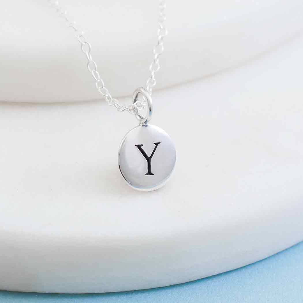 This small sterling silver letter disc "Y" necklace is perfect for making personalized jewelry. Create a cluster necklace with birthstone charms, hobby charms, or word charms! The possibilities are endless with this letter charm necklace.