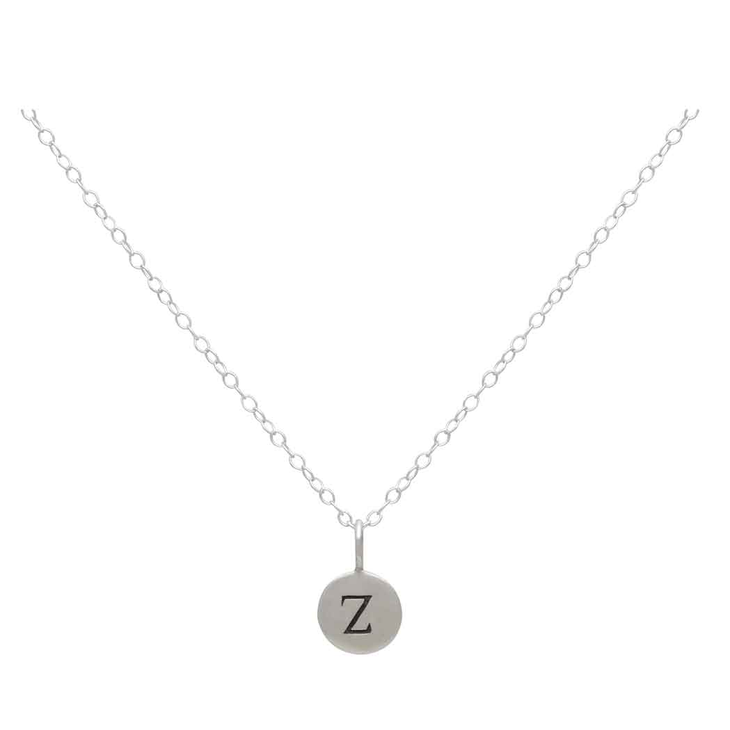 This small sterling silver letter disc "Z" necklace is perfect for making personalized jewelry. Create a cluster necklace with birthstone charms, hobby charms, or word charms! The possibilities are endless with this letter charm necklace.