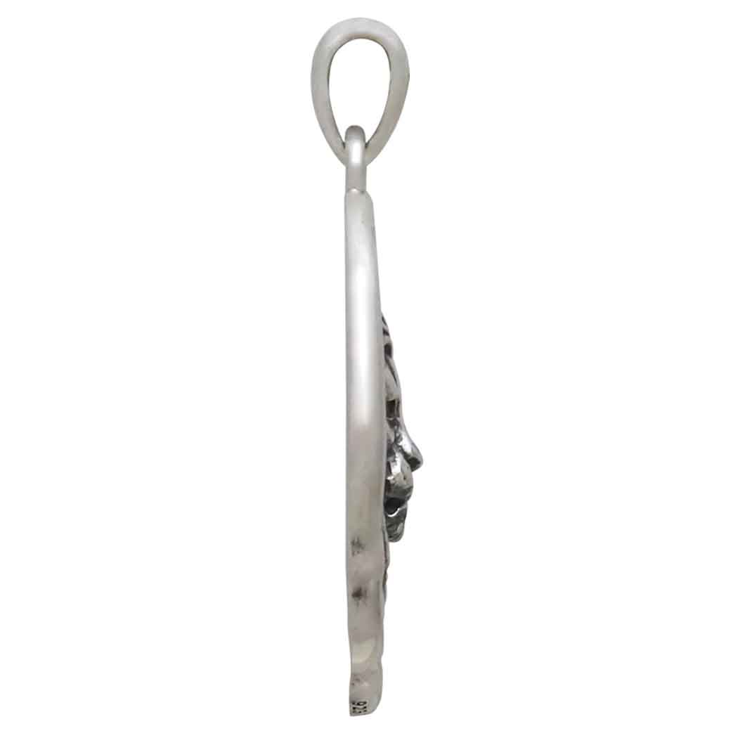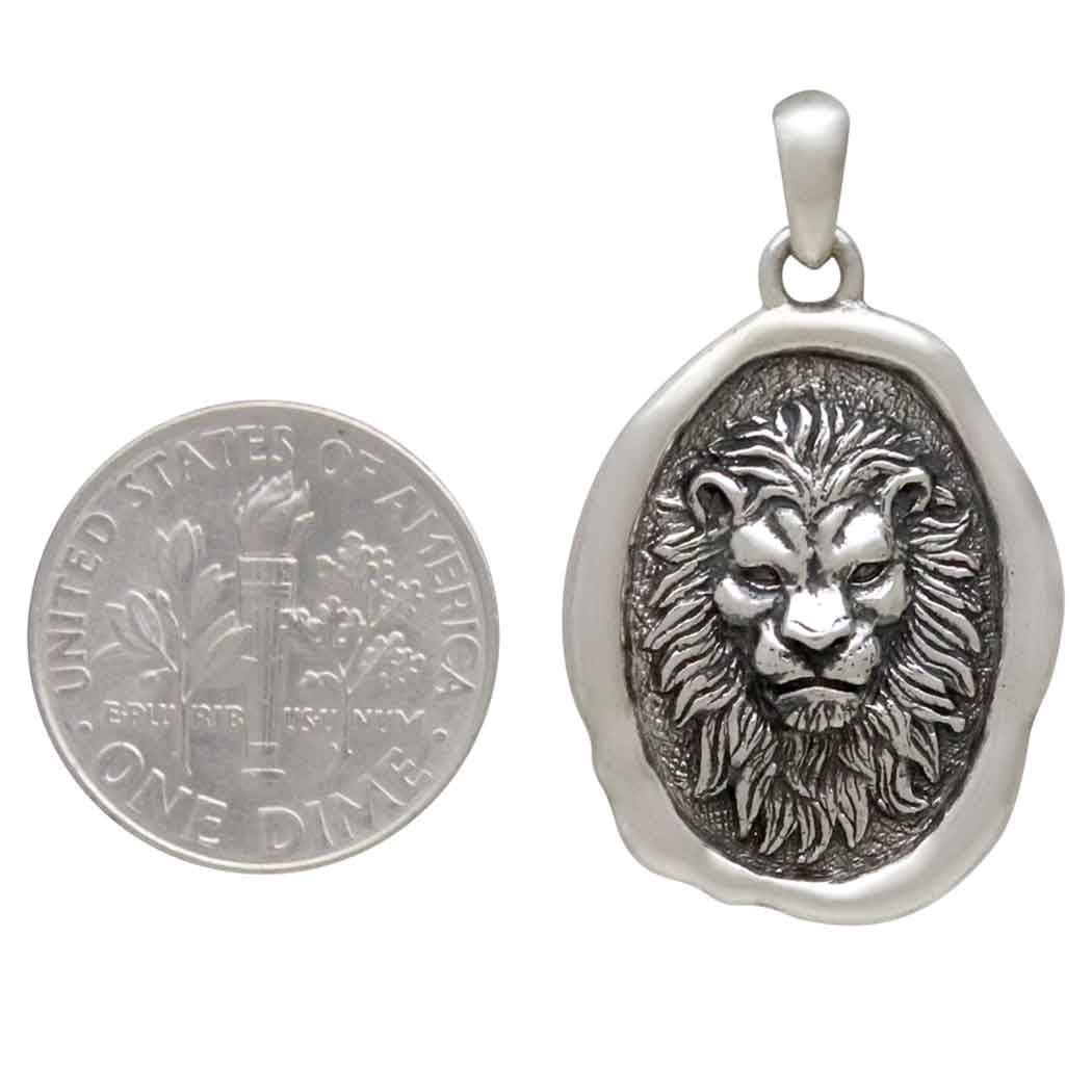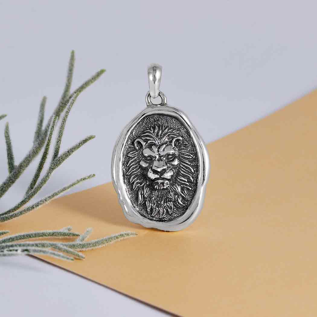 Embrace strength, courage, and regal power with this sterling silver lion charm. At the center of this bold design lies a finely detailed lion, symbolizing leadership, bravery, and protection. Encased in an organic, wax seal-inspired frame, this charm radiates timeless elegance and fierce determination. The oxidized finish highlights the lion's majestic features and adds depth to the textured background, evoking an ancient, vintage feel. A perfect talisman for those who lead with strength or seek to channel inner courage, this charm makes a powerful addition to any jewelry piece.