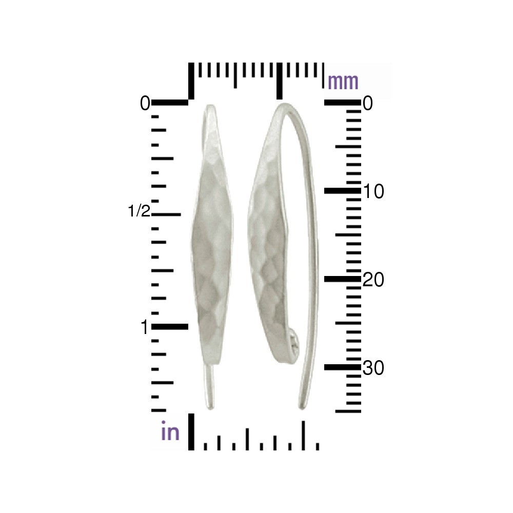 Large Contemporary Sterling Silver Earring with Shiny Hammer Finish on Front. Fluid design provides one hidden loop for hanging.