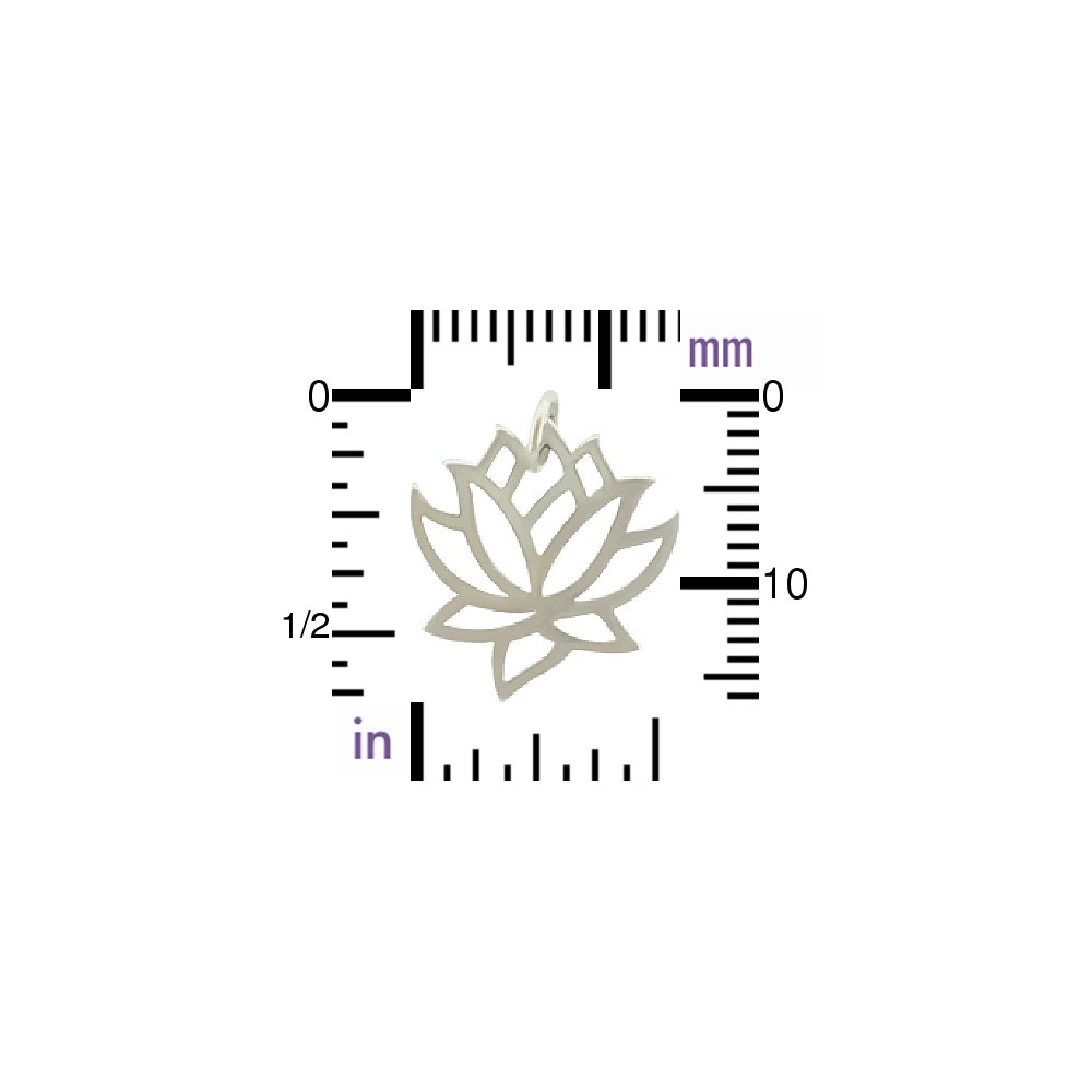 Sterling Silver Lotus Charm. Considered by many as the most beautiful flower in the world, the lotus blossom has come to symbolize enlightenment, serenity, and determination to grow strong under any circumstance. One of our all time best sellers, this silver charm is lovely on earrings, necklaces and bracelets. It is ultra versatile. Try stringing to various points among the open work petals for a fresh look. Browse more Lotus Charms.
