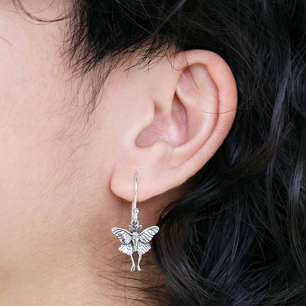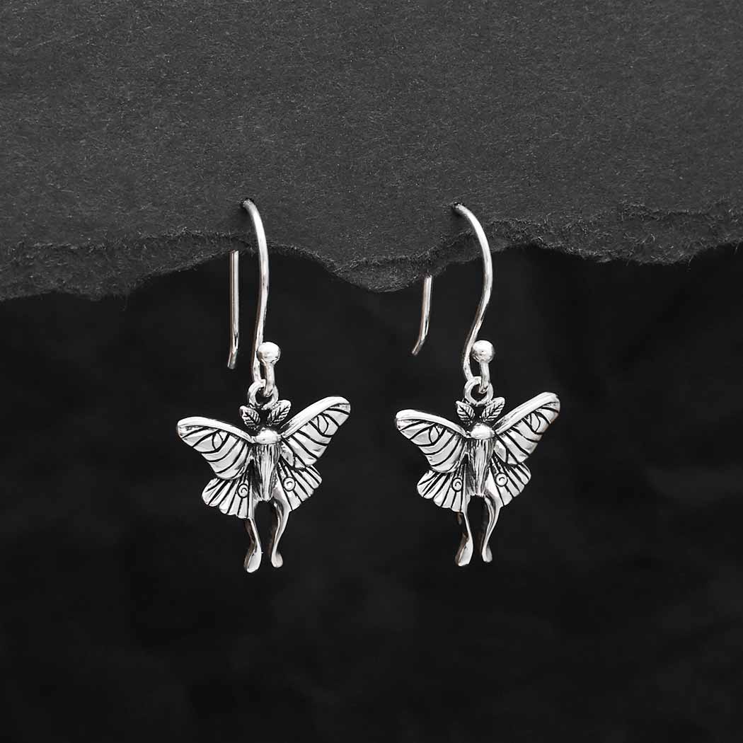 Offer these sterling silver luna moth dangle earrings to your customers as symbols of passion, profound intuition, and psychic awareness. Her life-like details from the texture on her antennae to the tips of her wings are alluring.