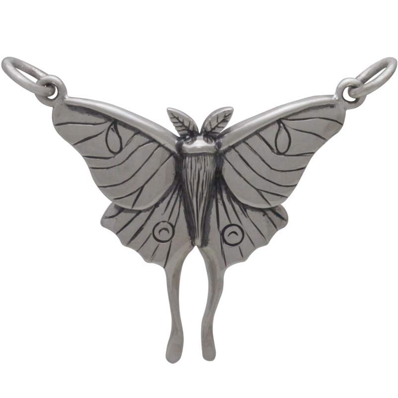 Evoke the beauty and allure of the moth when you wear this sterling silver moth charm. The life-like details on the wings, body, and fan-shaped antennae are remarkable. With jump rings attached to both wings, you can easily make this moth pendant a centerpiece on your necklaces.