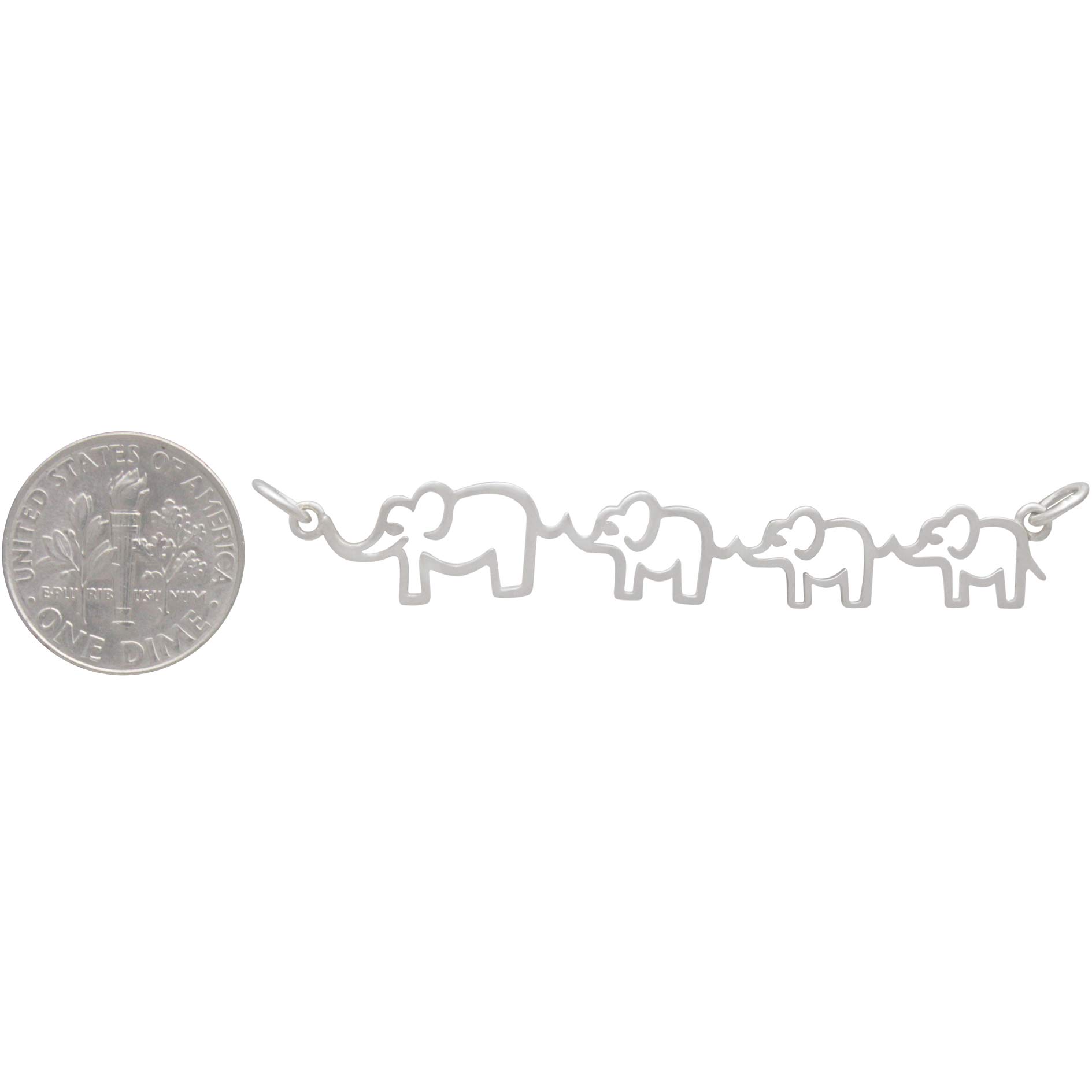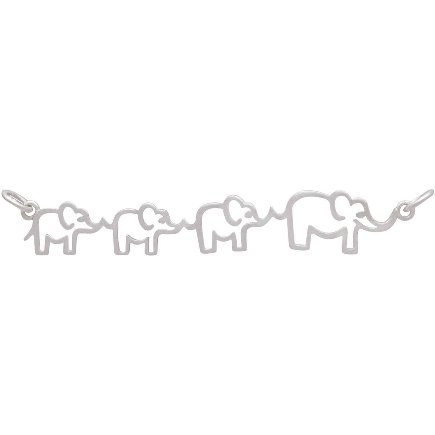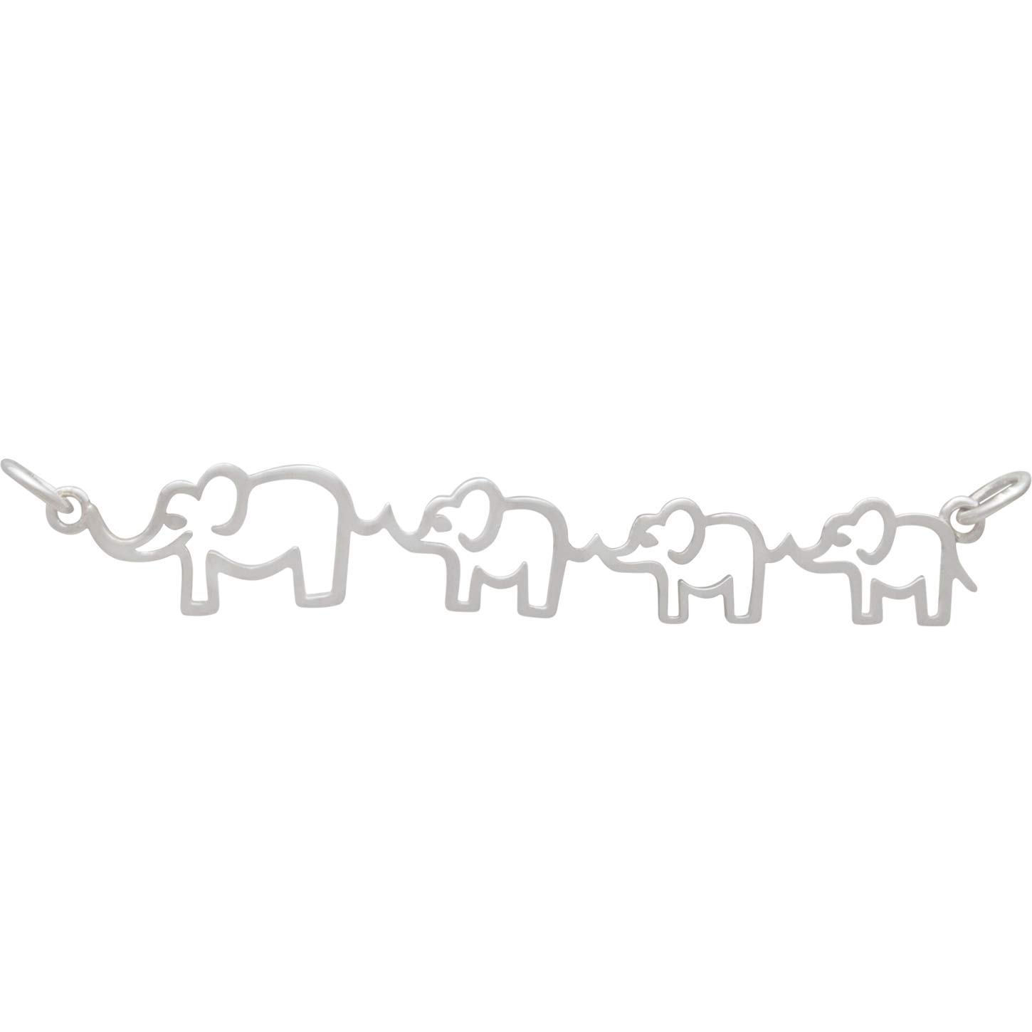 Sterling silver mama and THREE baby elephant pendant. Celebrate mamas love for her young with this endearing elephant family charm. With mama in the lead, her baby elephants hold on to her tail while they walk single file in search of food and water.