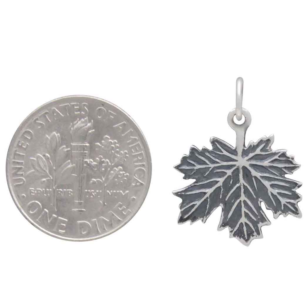 This Sterling Silver Maple Leaf Charm is a timeless symbol of natural beauty and elegance. This charm captures the intricate details of a maple leaf in stunning sterling silver. Whether worn on a bracelet or necklace, it adds a touch of rustic charm and sophistication to any ensemble. Perfect for nature enthusiasts and jewelry lovers alike. Complete this silver charm into finished jewelry by stringing it onto a Finished Chain or create a personal charm cluster necklace by combining with an Initial Charm.