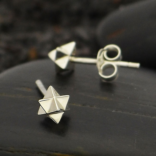 These sterling silver merkaba post earrings are perfect for anyone who loves simple geometric jewelry. Often thought to carry the energy of Spiritual transformation the Merkaba Star is seen as a vehicle for Ascension. Early Jewish mysticism cites the Merkabah as the chariot that carried Elijah up to heaven. Ancient Egyptians referred to this primal pattern as Mer-Ka-Ba with "Mer" meaning Light, "Ka" meaning Spirit and "Ba" meaning Body.