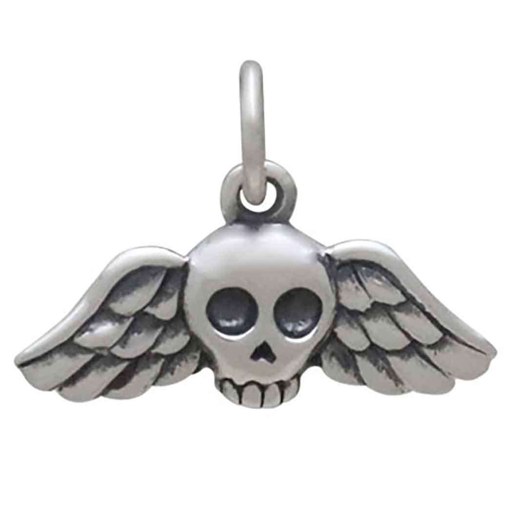 This sterling silver mini winged skull charm is a charming piece featuring a miniature skull with intricately detailed wings on either side. Symbolizing both mortality and freedom, it serves as a stylish and meaningful addition to any jewelry collection. Perfect for bracelets, necklaces, or keychains, this sterling silver charm adds a touch of edgy sophistication to any ensemble. Find more Skull and Bone Charms to add to your shop.