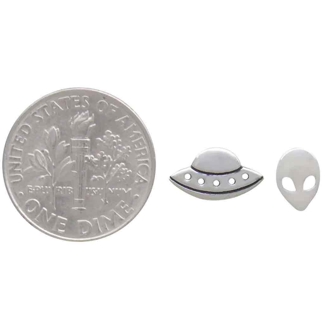 These sterling silver mismatched alien and UFO post earrings are fun-filled and truly out of this world.
