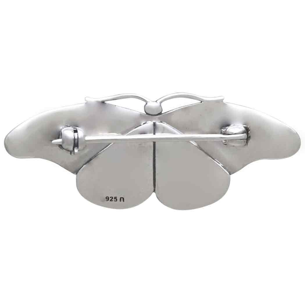 This entire butterfly brooch is made of sterling silver. Yep, even the pin component. And, it is sturdy enough to withstand the added stress of life as a brooch. With reasonable use and care, this brooch should not become misshapen by taking on and off. See our measurement guide.