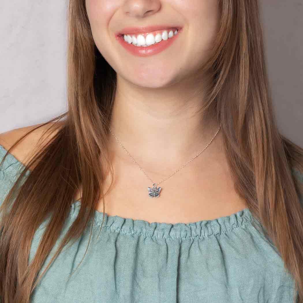 Summery and romantic, this sterling silver monarch butterfly necklace is perfect for brides maids gifts, summer birthdays, and beach jewelry. We marvel at their graceful wings fluttering by when we see monarch butterflies, understanding they're at the end of a miraculous migrational journey. We ponder how they're at their most beautiful later in life. My, how glorious she is.