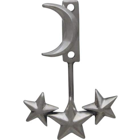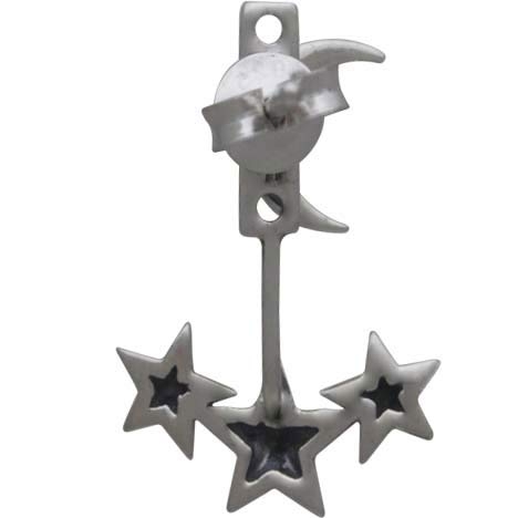 These sterling silver moon and star ear jackets are fun and playful! Wear the night sky with you with these silver ear jackets. These silver earrings are ready to wear, and would make a wonderful gift for any stargazer. Have your own personal Milky Way, these shining celestial earrings will add some "Star Power" to your wardrobe! The small moon on the top, sits on the front of the ear, while the larger, three stars sits behind your ear. The three star piece has three holes so you can adjust these earrings to perfectly fit you ear.