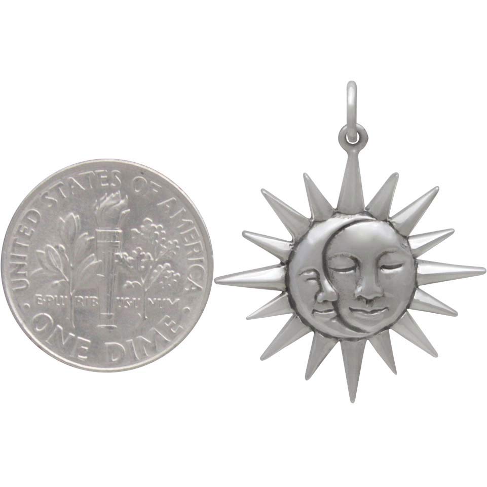 Placing a crescent moon and sun inside a full circle imbues this sterling silver sun & moon pendant with deep meaning. The sun has long been associated with masculine strength, light, truth, knowledge, and life itself; while the moon, associated with feminine strength, has long been a symbol of death and rebirth as it waxes and wanes. Since the dawn of time, life has been regarded in these terms - day and night, masculine and feminine, ying and yang, life and death.