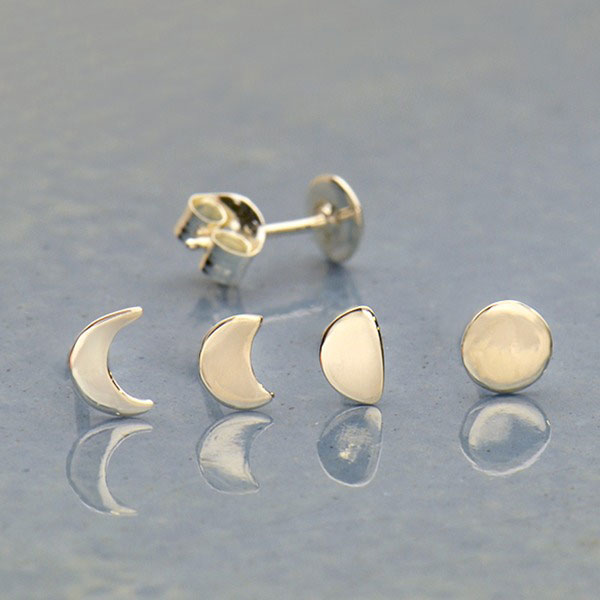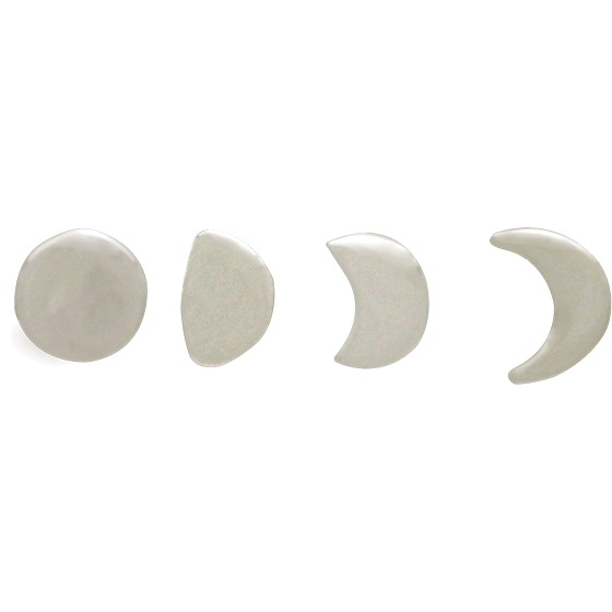 Sterling Silver Moon Phase Post Earring Set. These fabulous Phases of the Moon Earrings are sure to mix up your wardrobe. Each phase of the moon has its own associated meaning. New moons are for beginnings, for example, while the waning moon is believed to be a good time for banishing things, or clearing negative influences. You will receive a set of 4 different post earrings, the Full Moon, the Half Moon, the Wide Crescent Moon & the Skinny Crescent Moon. Mix and Match these 4 post earrings depending on your moon or where the moon is in it's cycle!