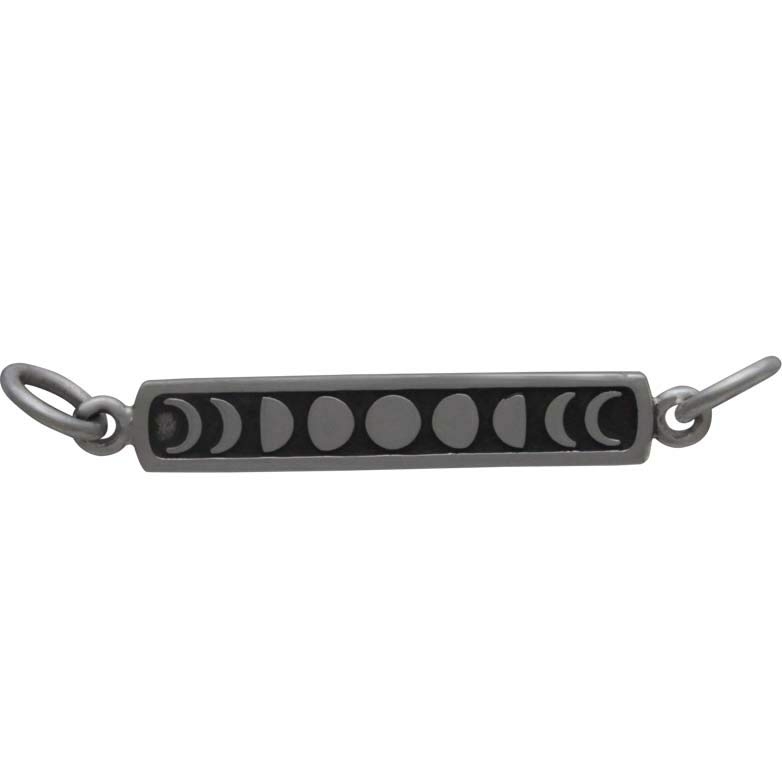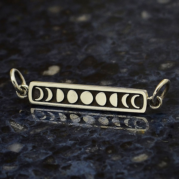 This sterling silver moon phases pendant link is perfecting for creating Celestial Jewelry. This etched and oxidized phases of the moon charm represents all of the lunar phases, as the moon waxes and wanes from New Moon to Full Moon. Each phase of the moon has its own associated meaning. New moons are for beginnings, for example, while the waning moon is believed to be a good time for banishing things, or clearing negative influences. Channel the meaningful phases of our lovely lunar orb with this beautiful textured link... while creating jewelry designs that are out of this world!