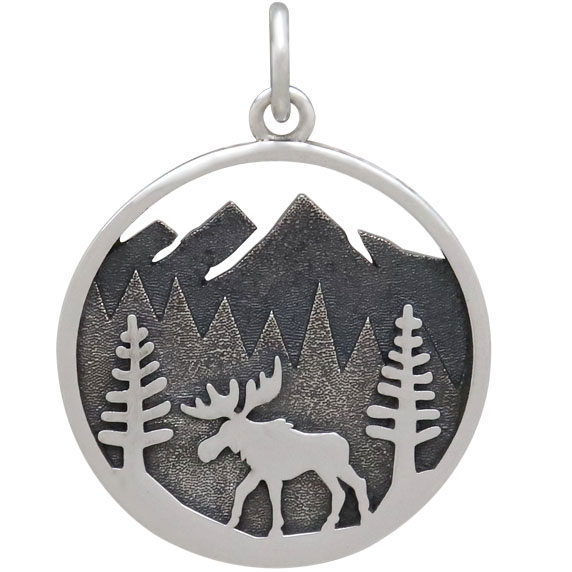 This sterling silver moose charm is set in a mountain meadow somewhere dreamy, where the snow blankets the mountains, the trees grow tall, and the rivers run wild. A shy and solo animal, the moose wanders these northernmost forests foraging upon trees and aquatic plants, leading a mostly peaceful life. Because of their dignified and monumental stature, moose have come to signify courage, strength, dignity, and independence.
