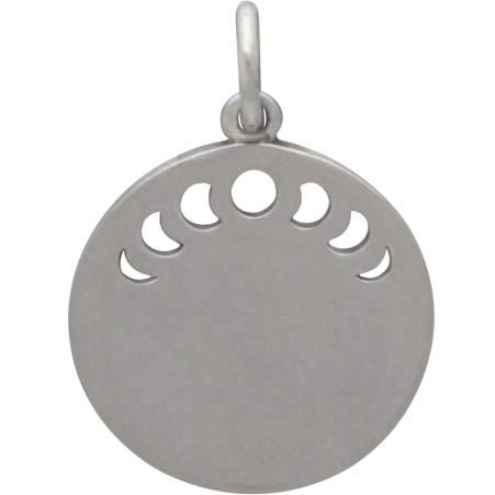 Sterling silver mountain pendant with phases of the moon honors both the heavens and the earth. Oxidized detailing imparts drama and dimension, contrasting the jagged mountains in the foreground. Every phase of the moon differs in meaning: new moons signal beginnings, while waning moons signal a clearing of negative influences. Channel your lunar powers when wearing this majestic moon phase pendant.