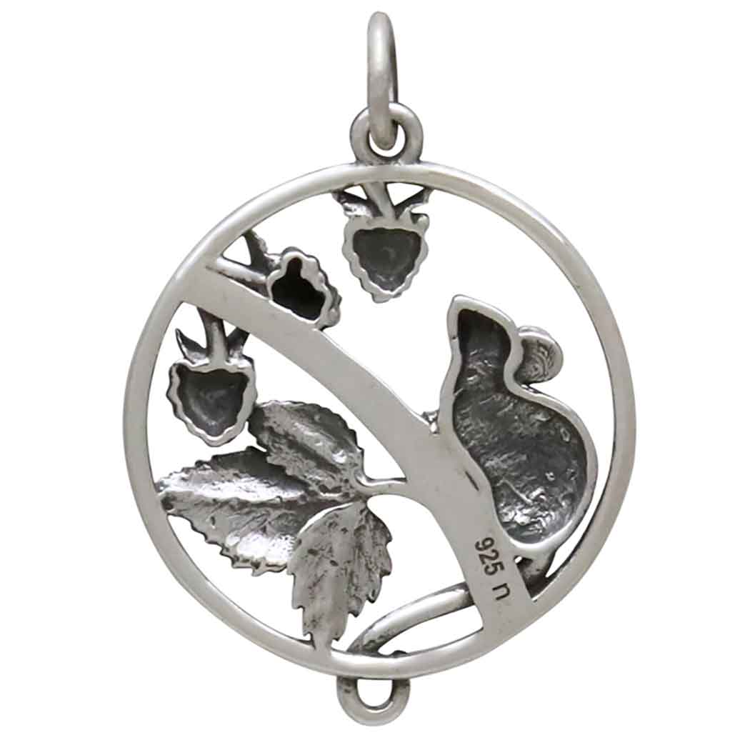 Celebrate the magic of the woodland with this intricately detailed sterling silver charm. Encased within a circular frame, a delicate little mouse is perched on a blackberry branch, surrounded by clusters of ripe berries and finely veined leaves. The charm’s design is rich with texture and depth, from the mouse’s soft fur to the plump berries and curling stems, capturing a serene moment in nature.