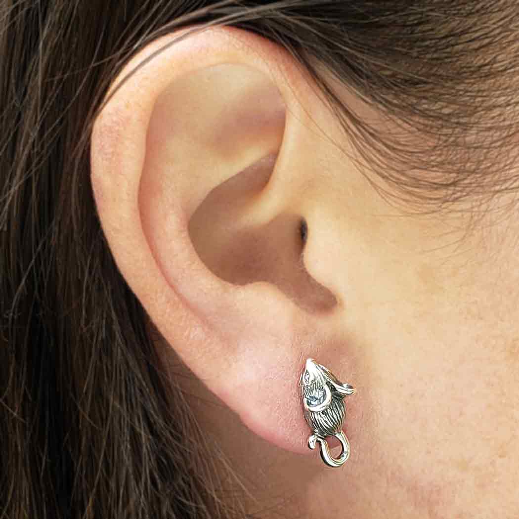 This sweet mouse looks as if she's ready to chase after a block of cheese or scurry away from a cat. With her sweetly curled tail and her large perky ears, this little friend is wonderfully detailed and ready to wear. Browse more of our Animal collection, and find more Post Earrings to stock your shop.