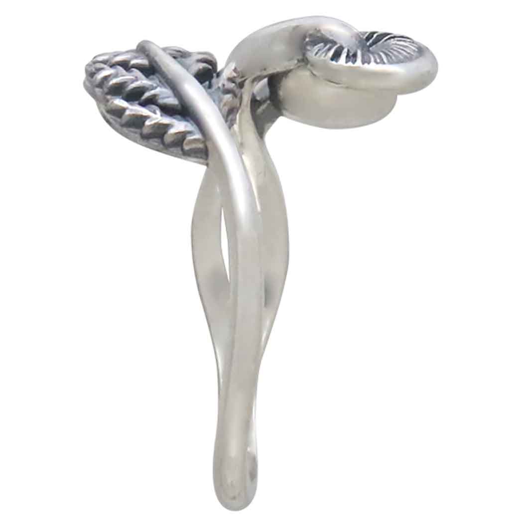 Embrace woodland elegance with this enchanting sterling silver mushroom and fern bypass ring featuring two delicate mushroom caps paired with a beautifully detailed fern frond. This nature-inspired design captures the intricate textures of forest flora. The adjustable band offers a perfect fit, making it a versatile and meaningful accessory for lovers of the outdoors and botanical beauty.