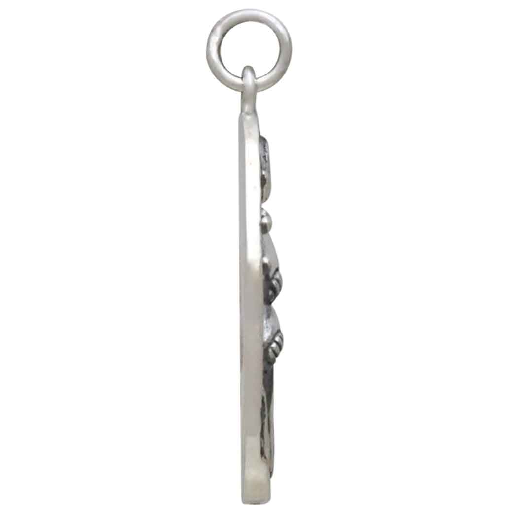 This charming sterling silver mushroom cottage pendant features a whimsical design with a crescent moon, twinkling stars, and a cozy mushroom house. Perfect for nature lovers or those enchanted by fairy-tale themes, this piece captures the magic of a mystical woodland retreat. Find more whimsical bug and mushroom charms to add to your shop!