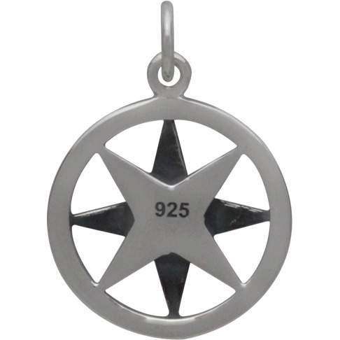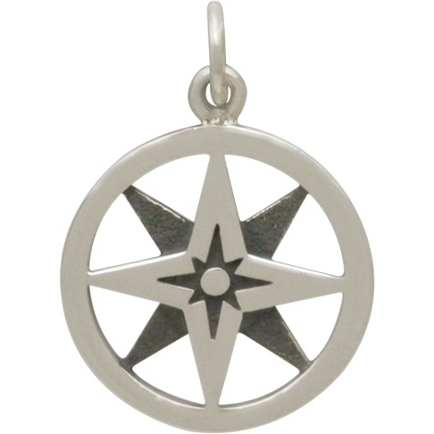 Sterling Silver North Star Compass Charm. The compass has long been considered a good luck charm and a symbol of protection and guidance while the North Star represents "finding your true north." This multilayered pendant features a textured and oxidized background to add depth and drama! Let this little charm be a reminder to stick to your own path of beliefs and aspirations. Great for a graduate or someone taking on a new journey! Add more to your collection with other Travel charms and pendants.