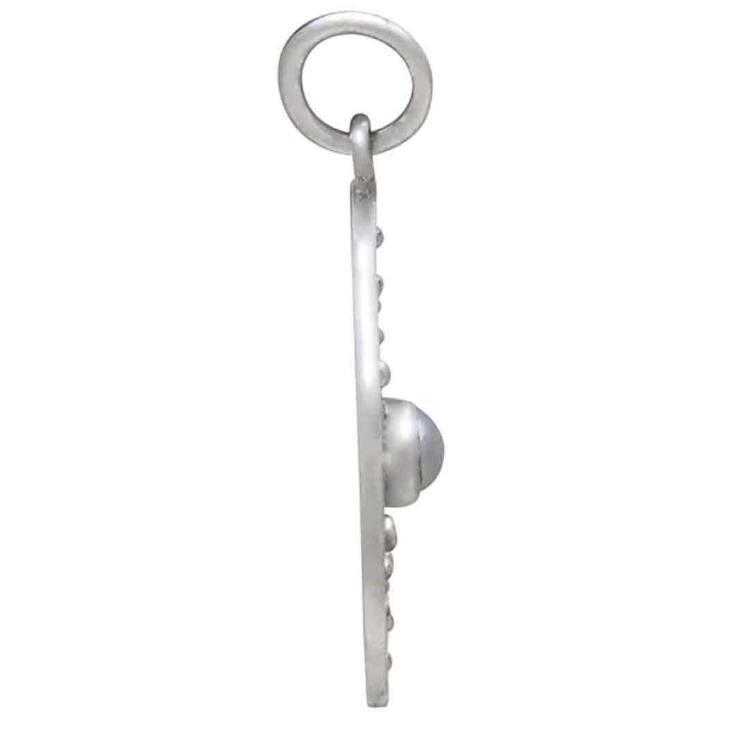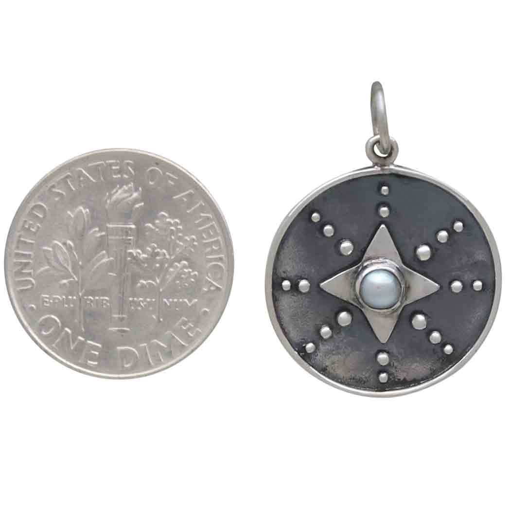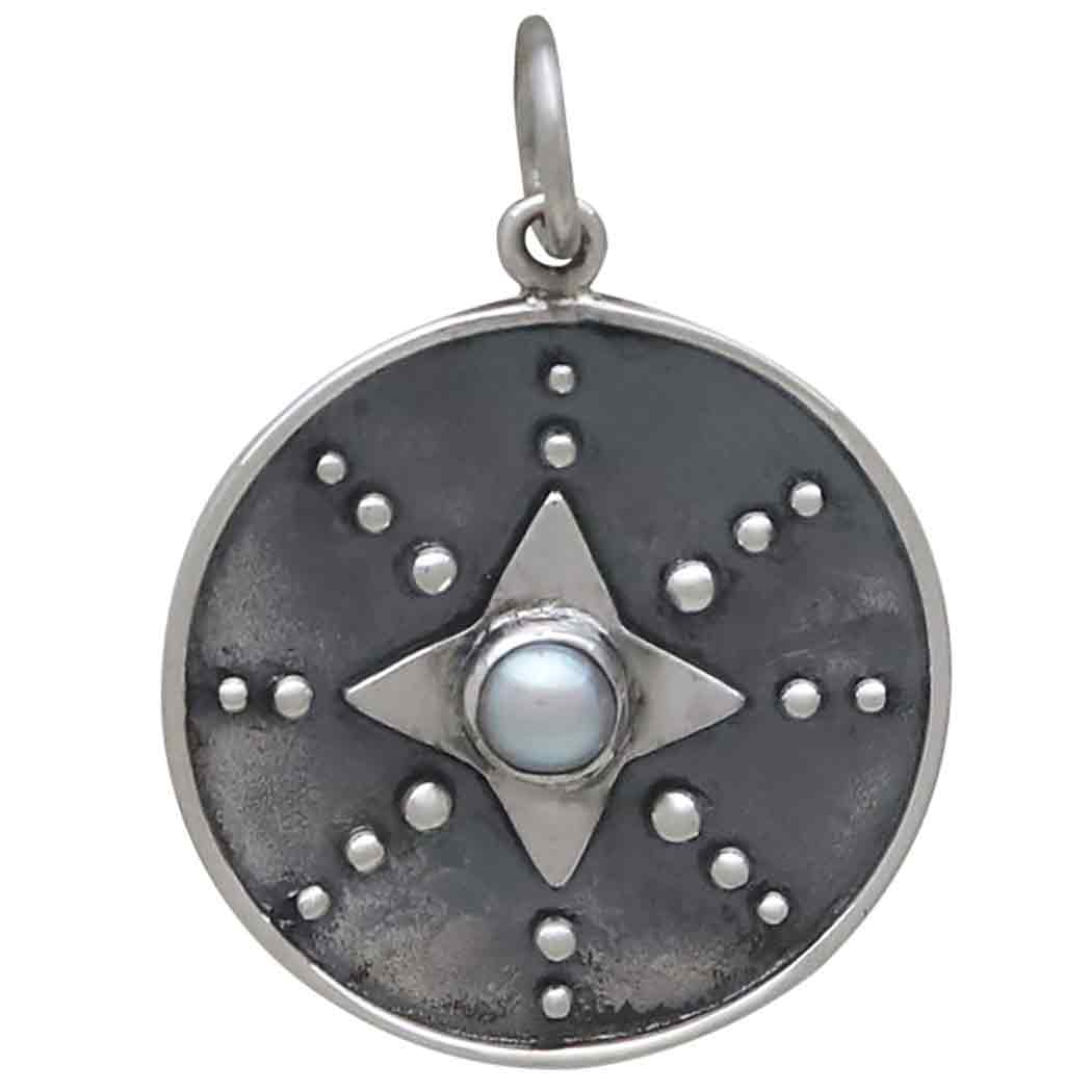 This sterling silver north star pendant with pearl serves as a fierce symbol of confidence and determined faith. Dotted with tiny stars and centered with white pearl, this poignant north star is a reminder to cultivate a strong foundation to anchor your adventerous spirit. Handmade in Bali.