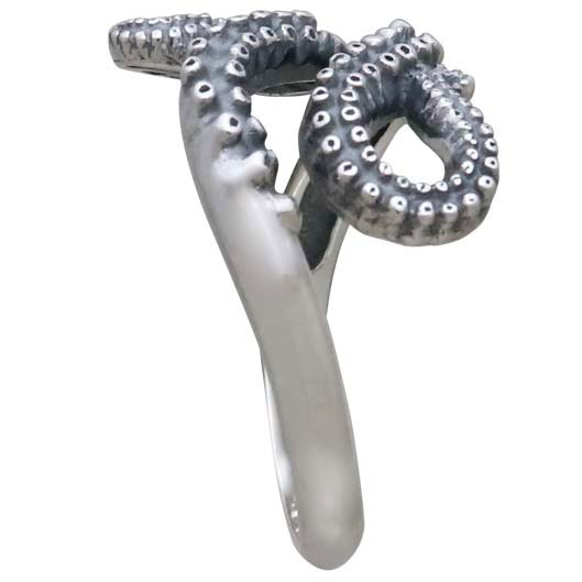 Notice how the suckers on the tentacles gradually become smaller and smaller as they curl around the finger. This graduation, the gentle curling, and slender size keeps this octopus ring on the elegant side. It's all in the details when it comes to finding jewelry your customers will love wearing.The octopus symbolizes adaptability, creativity, mystery, regeneration, and illusion. Take a deep dive into our extensive Ocean Charms. Find more adjustable Rings to add to your shop for quick sales.