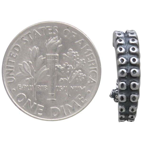 Market this sterling silver octopus tentacle post earrings to your customers who are drawn to the mystery and illusive nature of cephalopods. The slender, sculptural tentacle and fine texturing are eye-catching.