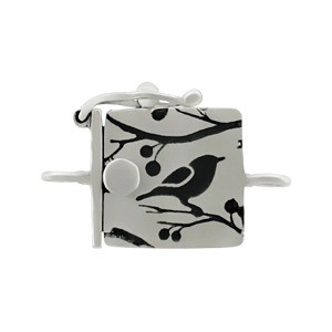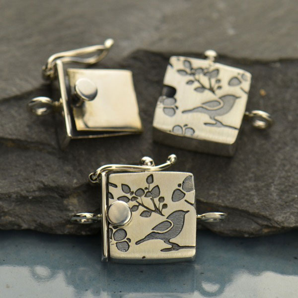 Sterling Silver Single Strand Box Clasp. A sweet clasp featuring a songbird perched on a cherry blossom branch. Great for simple strand necklaces or bracelets.