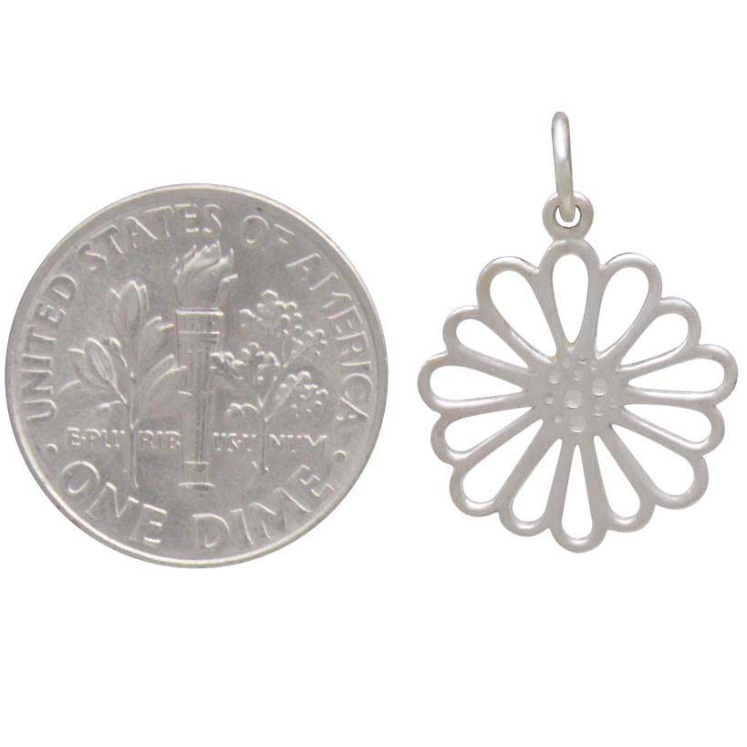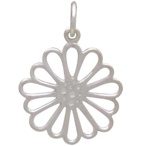 This sterling silver openwork daisy charm is a wonderful addition to your shop, especially if you market jewelry to new moms and young women. Daisies symbolize beauty, true love, & transformation, along with childbirth and new beginnings. Much of this stems from a Celtic legend in which Gods would sprinkle daisies over the earth to cheer up parents who had lost a child.
