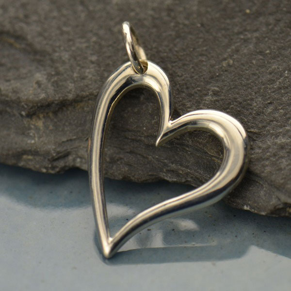 Sterling Silver Open Heart Charm. With its curvy lines and sweetheart attitude, this heart charm will surely become a favorite! For quick & easy designs, pair with any sterling silver finished chain! Get more Heart Charms. Look for matching charms in the Love Letters Collection too!