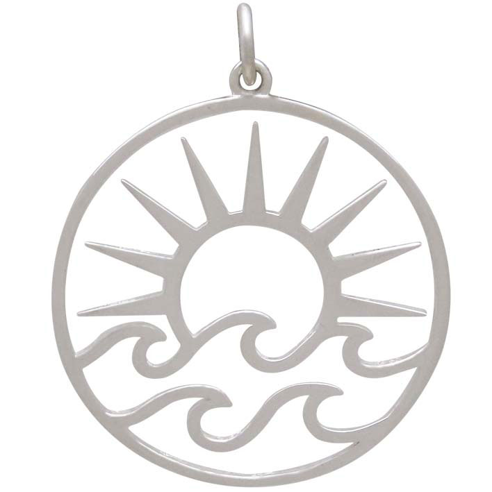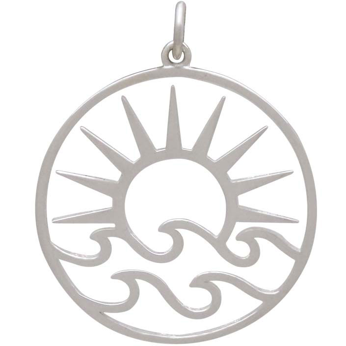 Your customers who enjoy the beach life will be drawn to this sterling silver openwork sun pendant with waves.