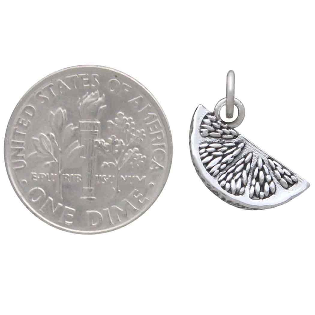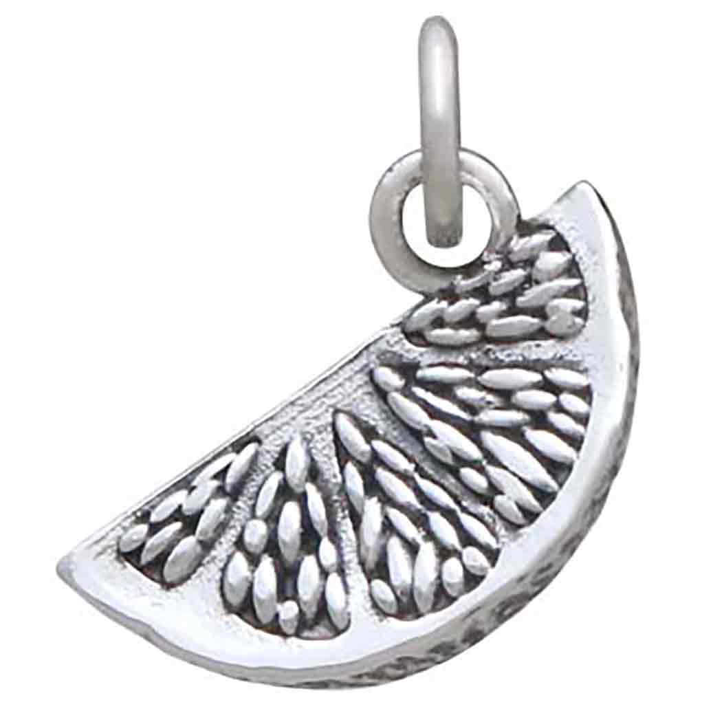 This sterling silver orange slice charm serves as a reminder to enjoy the good life. In the Baroque Era, oranges were considered an exotic fruit and associated with the high social status of noble men and women. Oranges became a symbol of prosperity suggesting great wealth, dreamy desitnations, and far-off lands. Pair this orange slice with other sweet fruit charms to make young-at-heart jewelry that celebrates the Spring and Summer seasons.