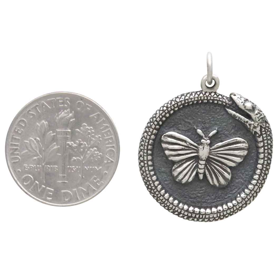 In this sterling silver talisman charm, we married two compelling images - the ouroboros with a butterfly. Butterflies are messengers of transformation, hope, and inner strength. Their delicate beauty carries profound spiritual meaning, reminding us to embrace change and trust the process of becoming.