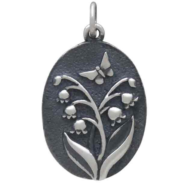 Let this sterling silver oval lily of the valley charm represent new beginnings, modesty, and prosperity in your jewelry designs. Some believe the flower's bell shape can call good spirits and ward off evil.