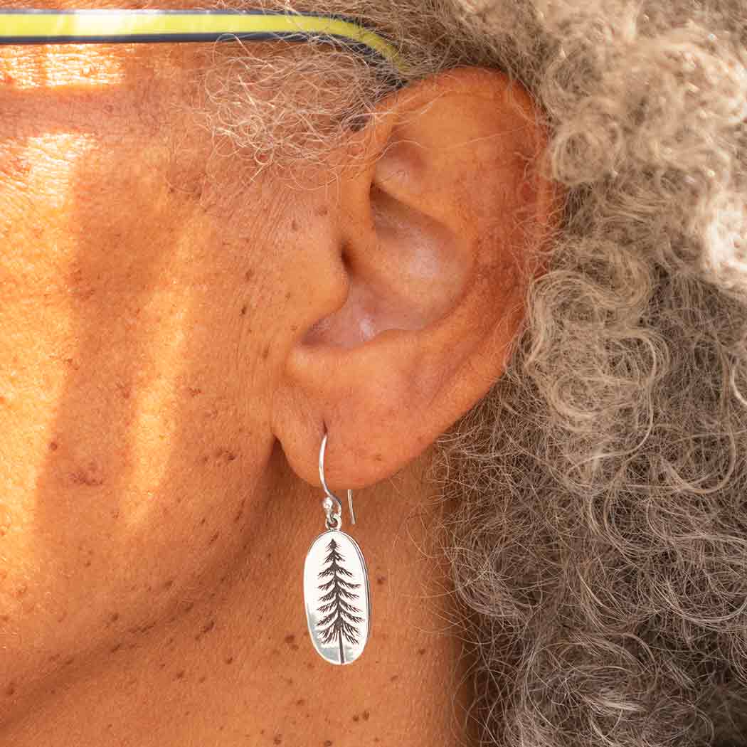 These sterling silver oval pine tree dangle earrings feature one of the most majestic trees of all time. Pine trees are cultural symbols the world over, representing fertility, wisdom and longevity. They are symbols of peace, and wherever pine trees grow, it will always spread love and hope, and become the stuff of legends.