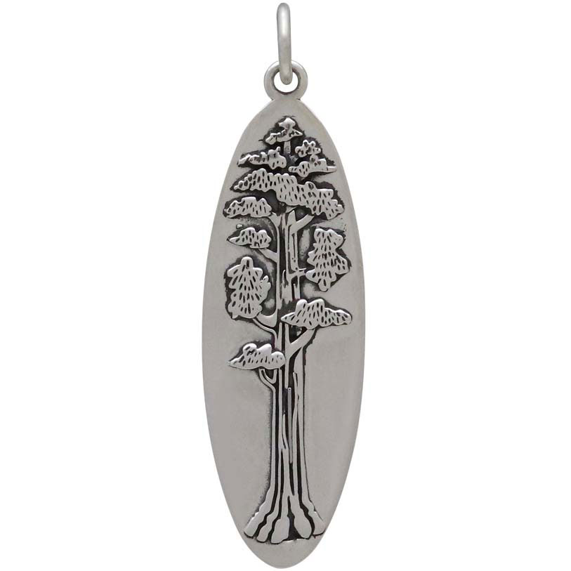 Tree lovers and naturalists will be delighted with this sterling silver oval sequoia tree pendant. Sequoias are among the Elder spirits on earth, growing together in community, often to soaring heights of 300 ft. and more.