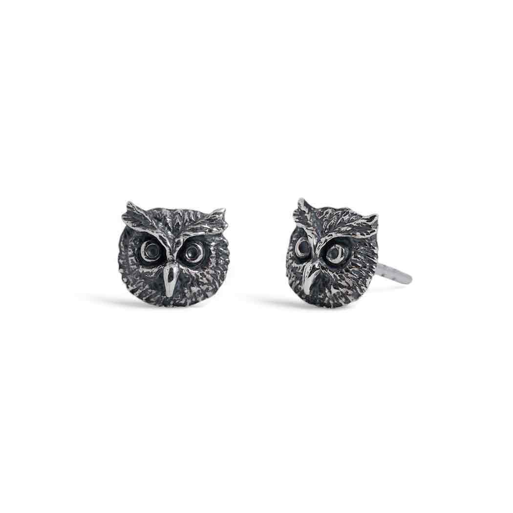 Embrace the wisdom and mystery of the night with these intricately detailed sterling silver owl face post earrings. Featuring a lifelike depiction of an owl's piercing gaze and soft feather textures, these earrings capture the beauty and allure of this nocturnal creature. Each earring showcases deep oxidized accents to highlight the detailing, from the bold, symmetrical eyes to the soft, layered feathers. Their lightweight design ensures all-day comfort, while the secure post backs make them ideal for everyday wear or a subtle statement piece.