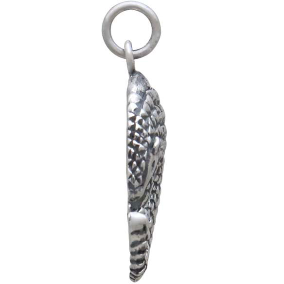 Stock your shop with quirky critters like this sterling silver pangolin charm. Consider making & selling pangolin charm jewelry to help bring awareness to this dynamic creature threatened with extinction. Pangolins are remarkable, nocturnal creatures dwelling mostly in the trees of Southeast Asia. Uniquely among mammals, pangolins are covered in scales layered in beautiful reptilian patterns. When predators threaten pangolins roll into tight balls, and they emit a powerful funk. This bestows pangolins with a powerful symbolic punch, including protection, resourcefulness, and second sight.