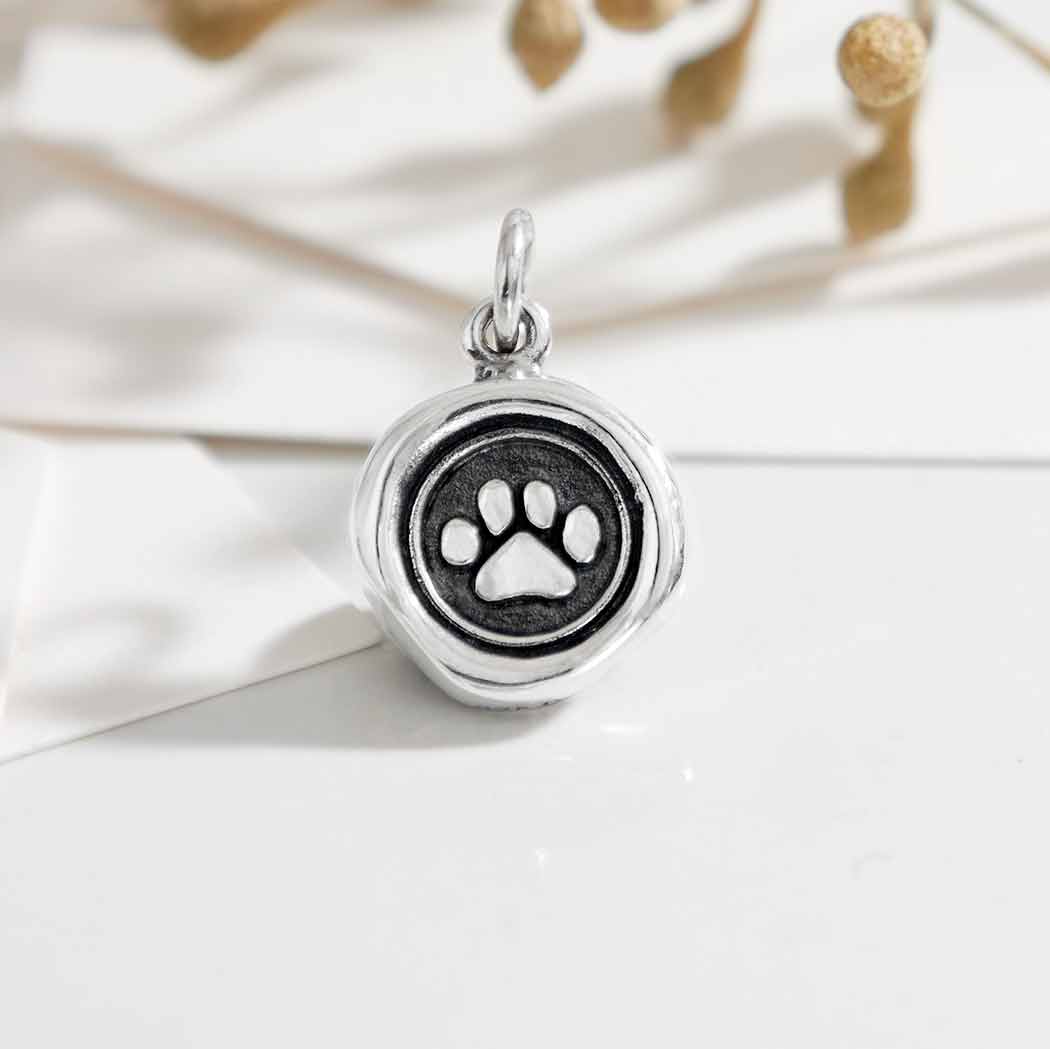 Irresistibly cute, offering this sterling silver paw print wax seal is like sending letters from puppies and kitties. Make necklaces and bracelets with them as a way to celebrate a new found pet, or say good bye to longtime pets.